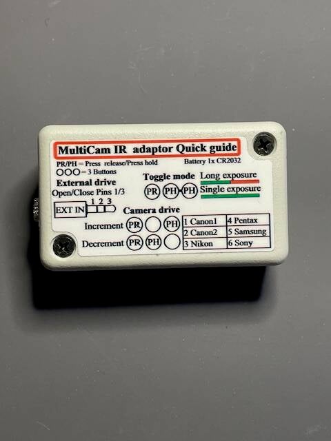 MultiCam IR Adaptor is a Cable to IR Remote adaptor for long exposure ( Bulb mode ) and single shot IR enabled cameras.